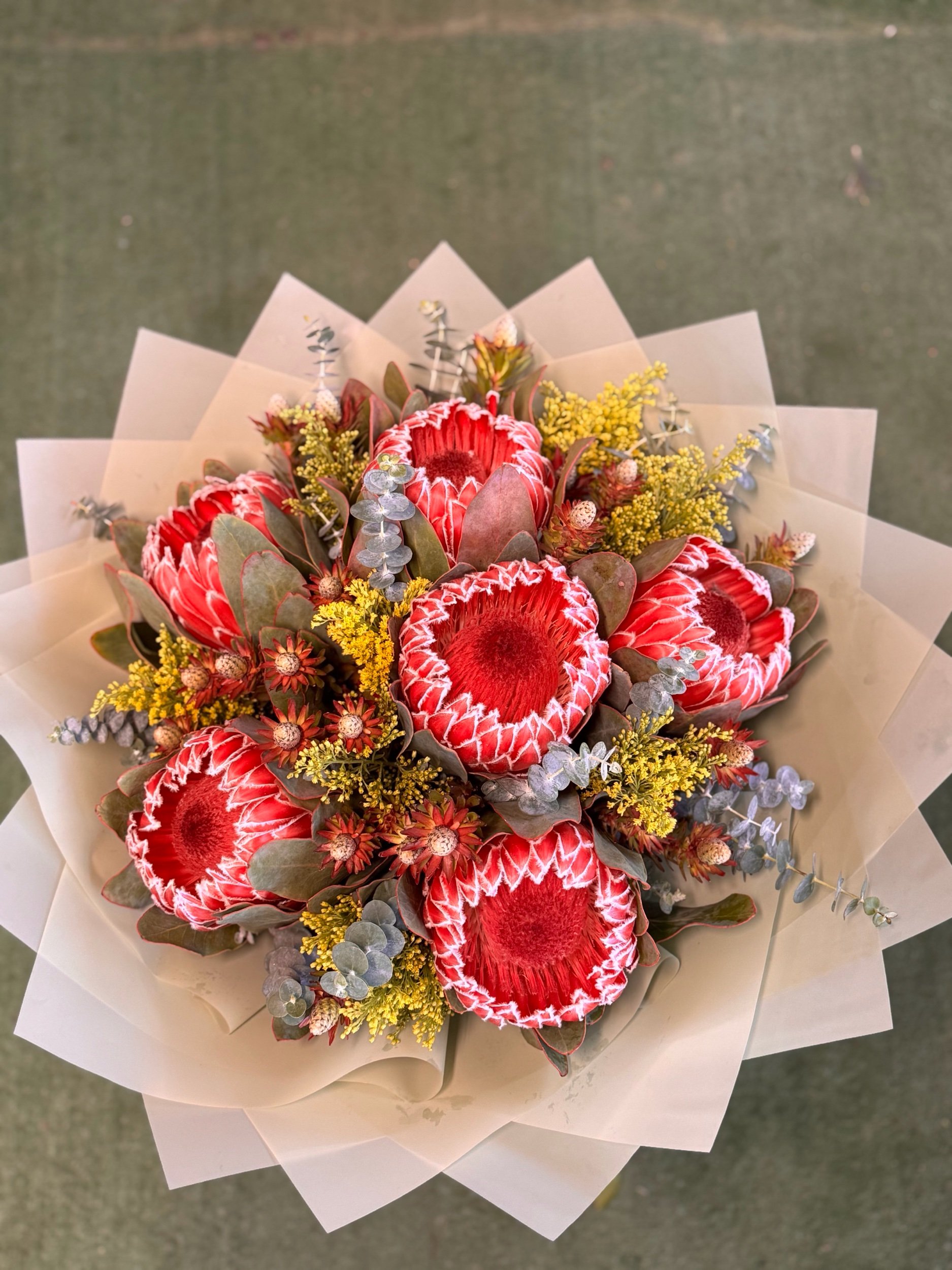 Our most beautiful local and seasonal proteas just yet! Only available for a few weeks!